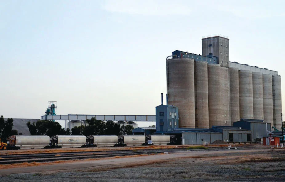 The Grain Silos in the West Australian wheatbelt town of Merredin – an excellent example of twentieth century mechanized and industrialized agriculture (and now also part of the PUBLIC Silo art trail)